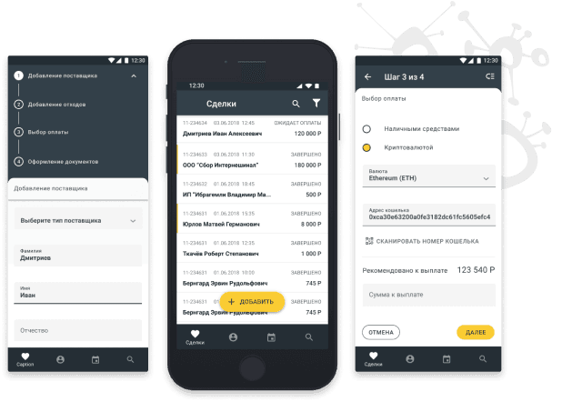 Формирование документов по сделки в соответствии с законами той юрисдикции, где совершается сделка очень важный момент для перехода в “белую” зону. Поэтому все необходимые документы сразу формируются в системе на основании данных между участниками сделки.