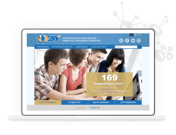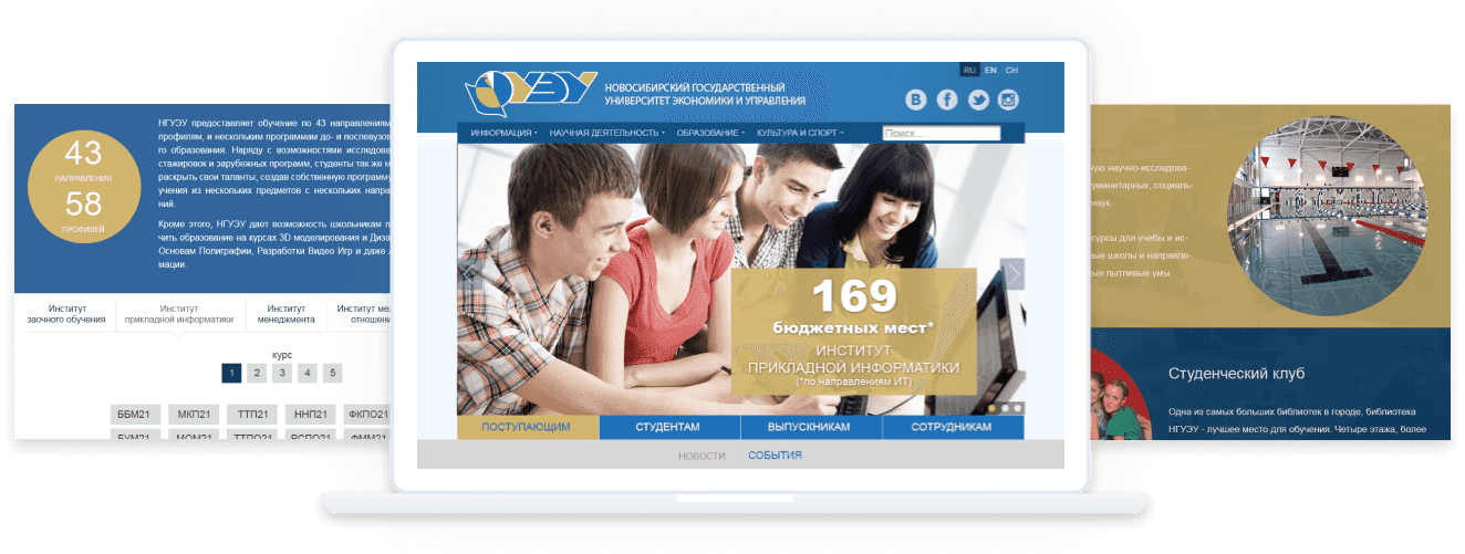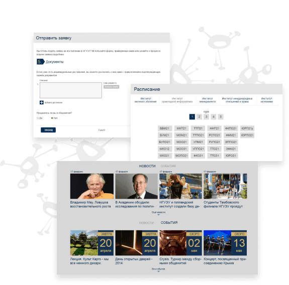 Сайт университета должен был учитывать интересы огромного количества целевых групп, а именно абитуриентов и их родителей, студентов, преподавателей и администрации, спонсоров университета, проверяющих органов и тд.