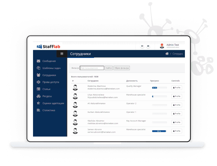 Командой разработки был реализован внутренний трекер HR задач. Для каждой должности были разработаны свои базовые задачи, которые нужно было завершить сотруднику для успешной адаптации в компании. Кроме этого, руководитель мог доставлять свои индивидуальные задачи на сотрудника.